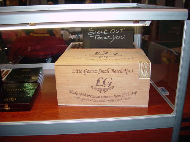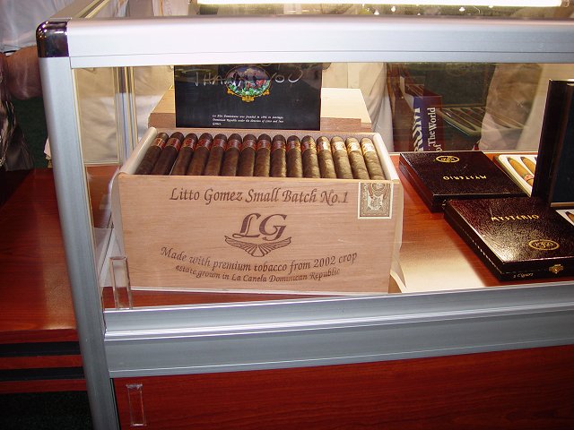 La Flor Dominicana We visited Litto Gomez and saw his latest new creations. His Mysterio, pictured below is easily the most beautiful cigar we saw at the show. He has also made a limited LG Cigar called "Litto Gomez Small Batch No. 1" which is packaged in a box of 105. The filler and binder will still be from his farm in the Dominican Republic but this time he added a Sumatra-seed, dark Dominican wrapper that is absolutely stunning. Only 20,000 cigars were rolled and with 105 per box that means there is less than 200 boxes of these available.